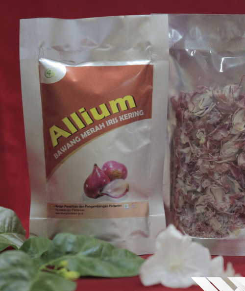 Bawang merah iris kering mampu memberi nilai tambah bagi petani, terlebih saat panen raya dimana harga biasanya jatuh karena produksi berlebih. Jenis olahan bawang merah ini merupakan irisan bawang yang direndam larutan anti browning lalu dikeringkan sehingga bisa awet lebih setahun.