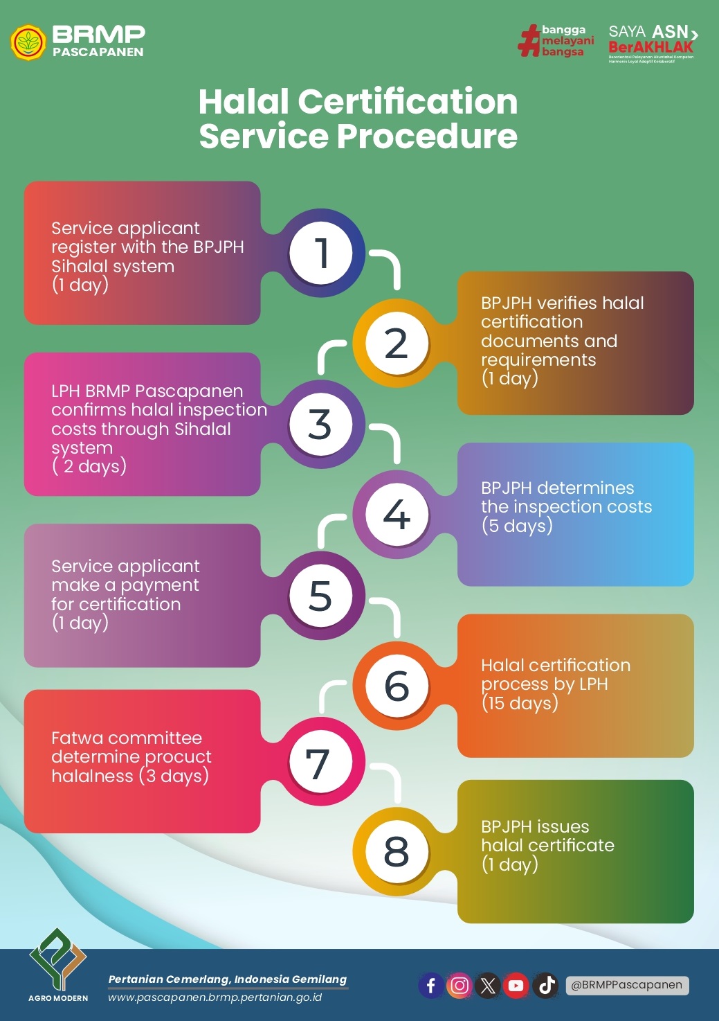 LPH BRMP Pascapanen Pertanian merupakan salah satu layanan BRMP Pascapanen yang menyelenggarakan audit kehalalan produk pascapanen pertanian, berlokasi di Jl. Tentara Pelajar Nomor 12, Kecamatan Bogor Tengah, Kota Bogor, Jawa Barat. LPH BRMP Pascapanen Pertanian memberikan jasa pemeriksaan dan/atau pengujian kehalalan produk pangan olahan, produk kimiawi, dan jasa penyembelihan untuk keperluan sertifikasi halal. Jasa yang diberikan kepada Pelanggan dilaksanakan secara profesional dan efektivitas yang tinggi untuk kepentingan pengguna jasa.